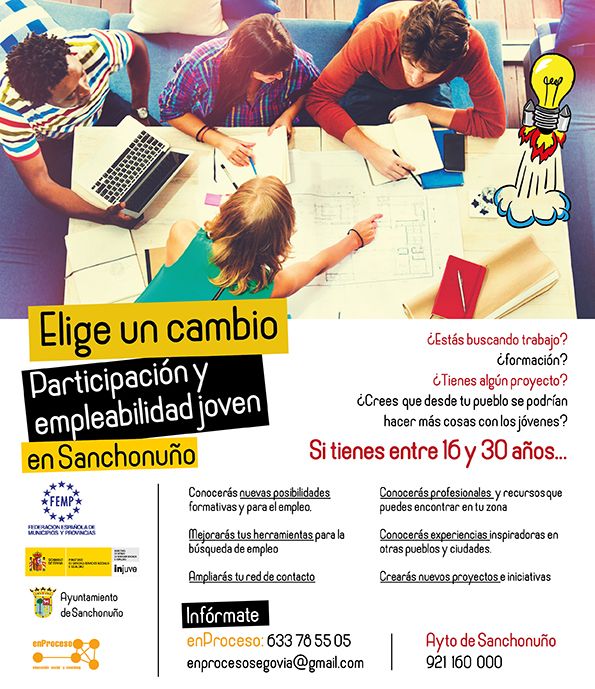 “Elige un cambio” es una iniciativa que pretende fomentar el desarrollo personal y la empleabilidad de los jóvenes de Sanchonuño y municipios de alrededor.